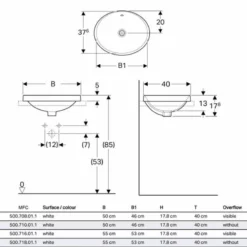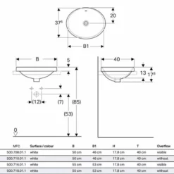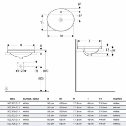 Geberit Variform 500 X 450mm Oval Countertop Basin 1 Taphole With Visible Overflow – 500.712.01.2