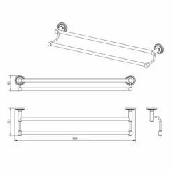 RAK Ceramics Cubis Double Towel Bar 600mm Wide – Black – RAKCUB9912B