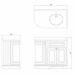 Burlington Freestanding 1000mm Curved Three Door Right Hand Vanity Unit – Matt White – FC3W