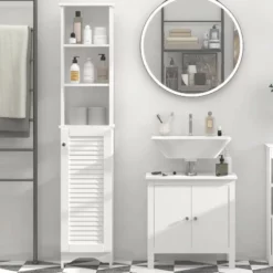 Essential VERMONT Wall Hung Column Unit 1 Door 350mm Wide – White – EF406WH