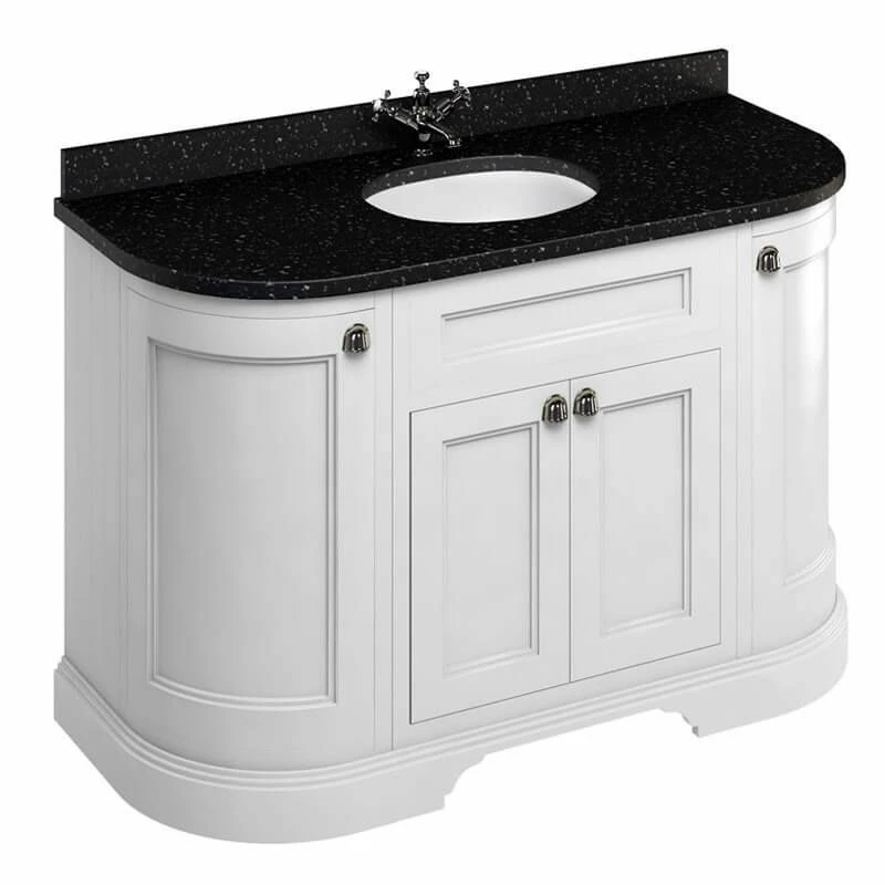 Burlington Freestanding 1340mm Curved Four Door Vanity Unit – Matt White – Details