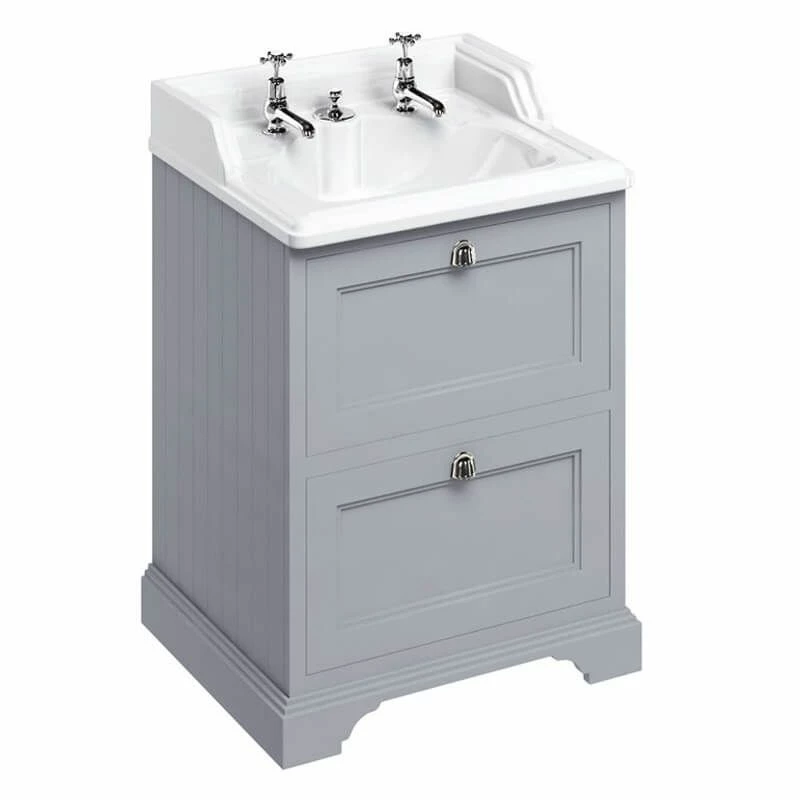 Burlington Freestanding 650mm Two Drawer Vanity Unit – Grey – Details