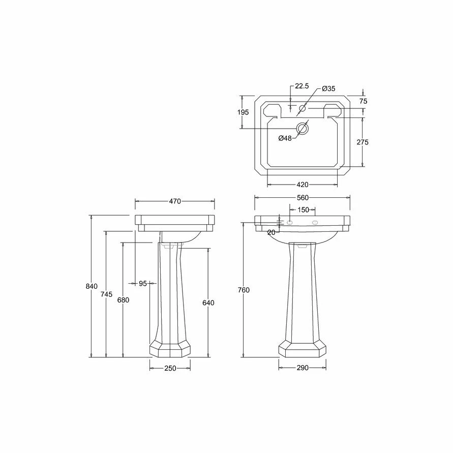 Burlington Victorian 56cm One Tap Hole Basin – White – Details