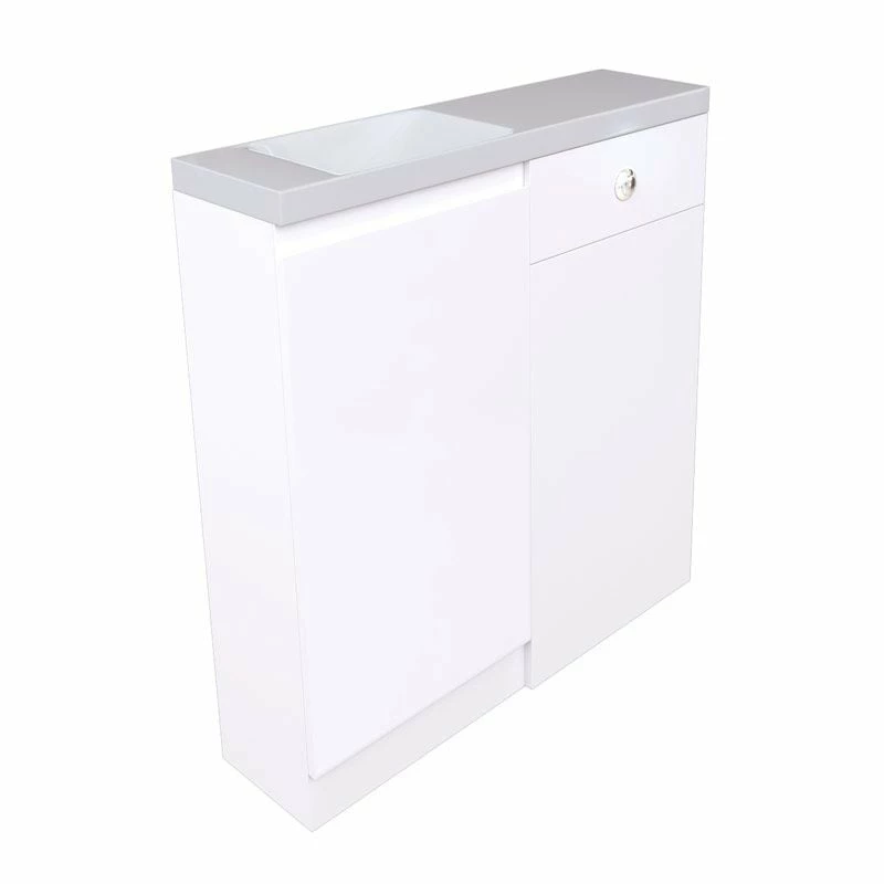The Calypso Veneto One Door LH Combi Vanity Unit Set is a modern and elegant option for your cloakroom or en suite. The set includes a 400 vanity unit with a single door, a 400 WC unit, and an 800 Modena Cast Wing Basin. The units have a smooth, handleless finish that will complement any décor. The soft-close hinges ensure that the doors close quietly and smoothly, preventing noise or damage.