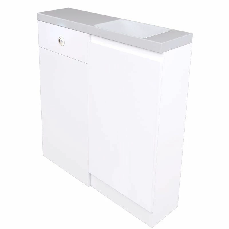 The Calypso Veneto One Door RH Combi Vanity Unit Set is a modern and elegant option for your cloakroom or en suite. The set includes a 400 vanity unit with a single door, a 400 WC unit, and an 800 Modena Cast Wing Basin. The units have a smooth, handleless finish that will complement any décor. The soft-close hinges ensure that the doors close quietly and smoothly, preventing noise or damage.