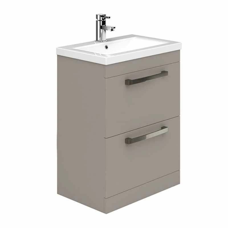Essential NEVADA Floor Standing Washbasin Unit + Basin; 2 Drawers 600mm Wide – Cashmere – EFP302CA – Details