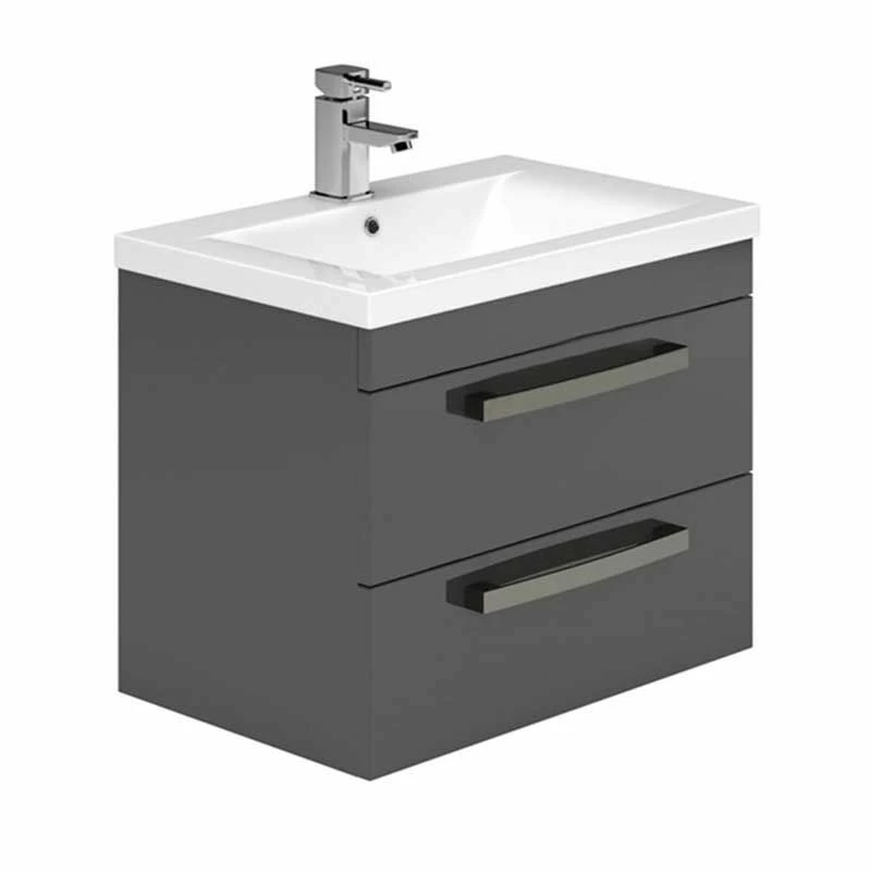 Essential NEVADA Wall Hung Washbasin Unit + Basin 2 Drawers 800mm Wide Grey – EFP305GR – Details