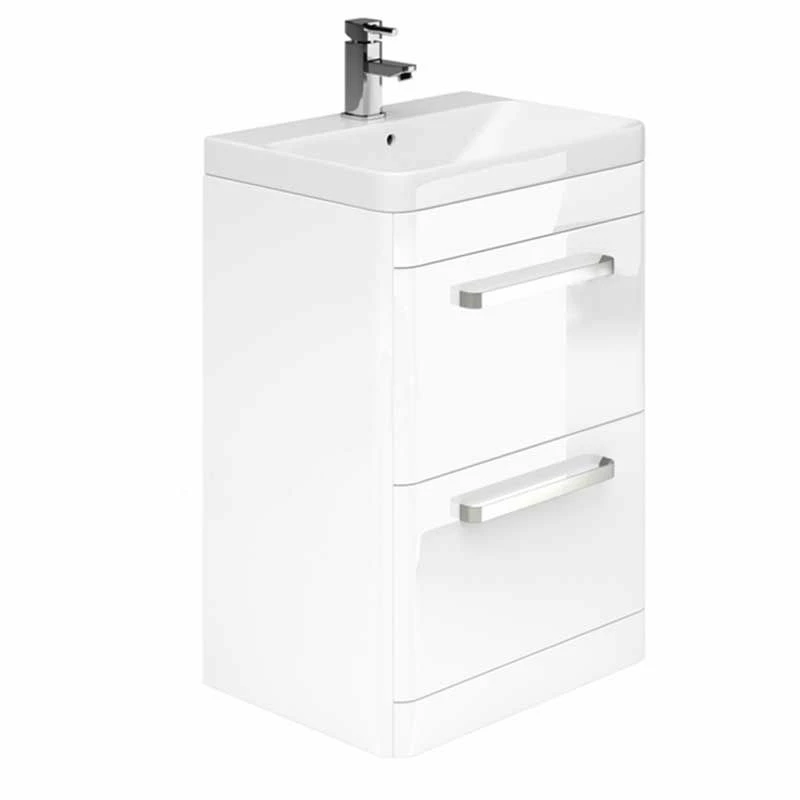 Essential VERMONT 600mm Floor Standing 2 Drawer Unit + Basin – White – EFP400WH – Details