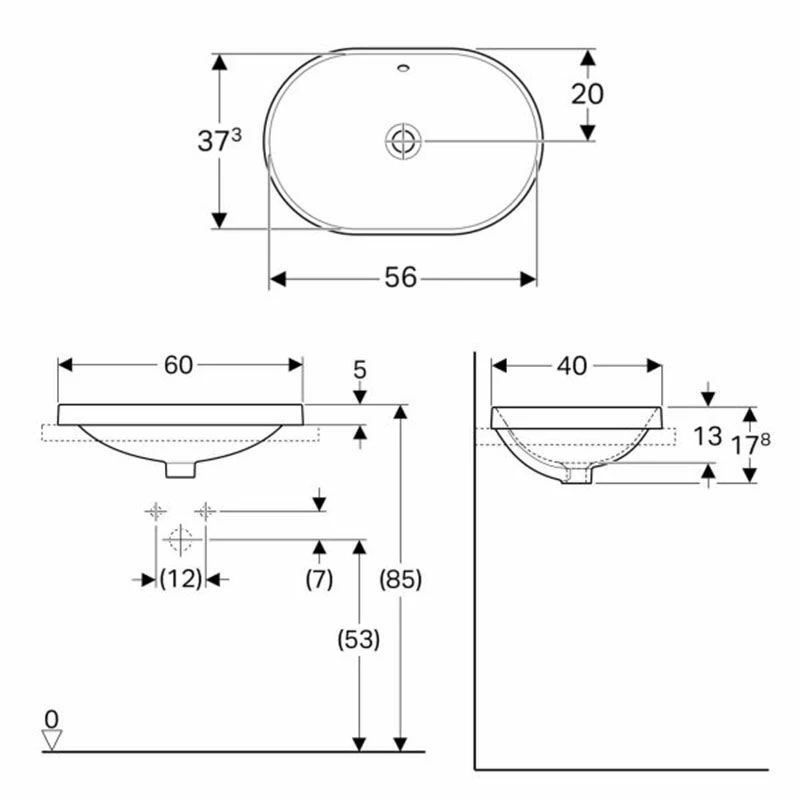 Geberit Variform 600 x 400mm Elliptic Countertop Basin Without Visible Overflow 500.730.01.2 – Details