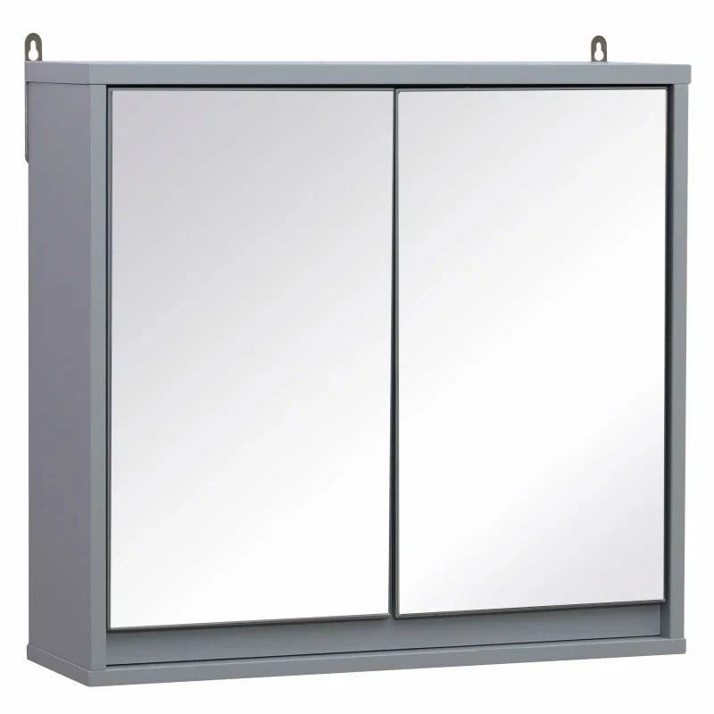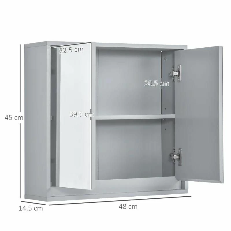 HOMCOM Wall Mounted Bathroom Mirror Cabinet Storage Shelf with Double Door 48 x 14.5 x 45cm – Grey – 834-172
