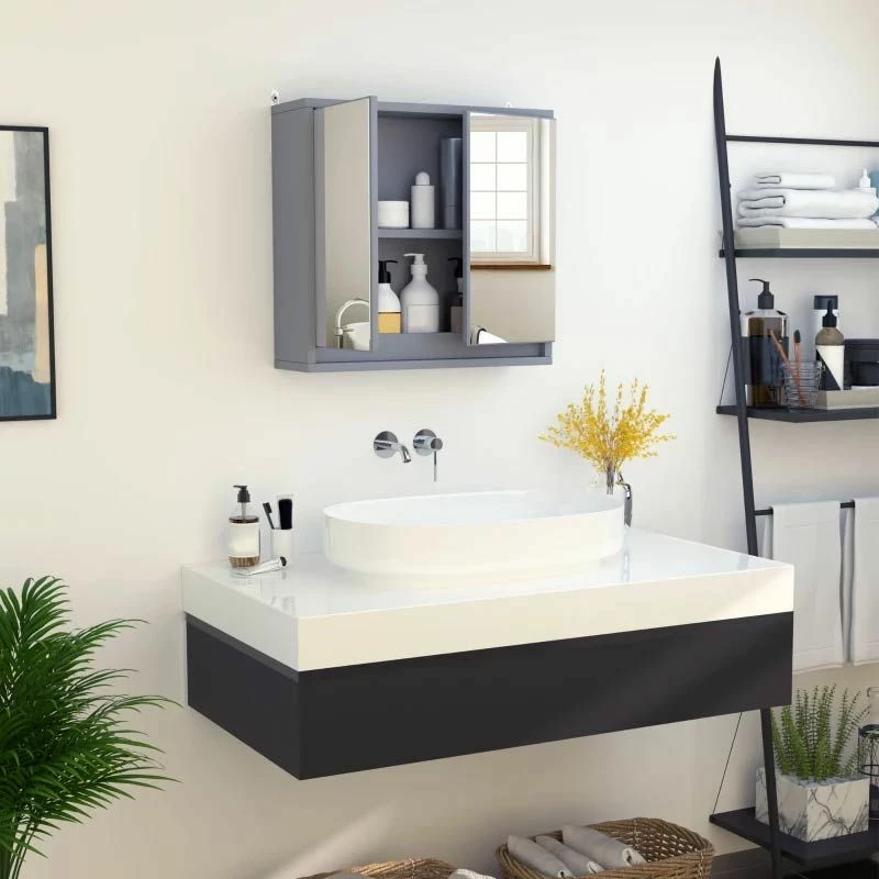 Overall, the HOMCOM Wall Mounted Bathroom Mirror Cabinet Storage Shelf with Double Door – Grey is a great choice for any bathroom. It is versatile, practical, stylish, and affordable.