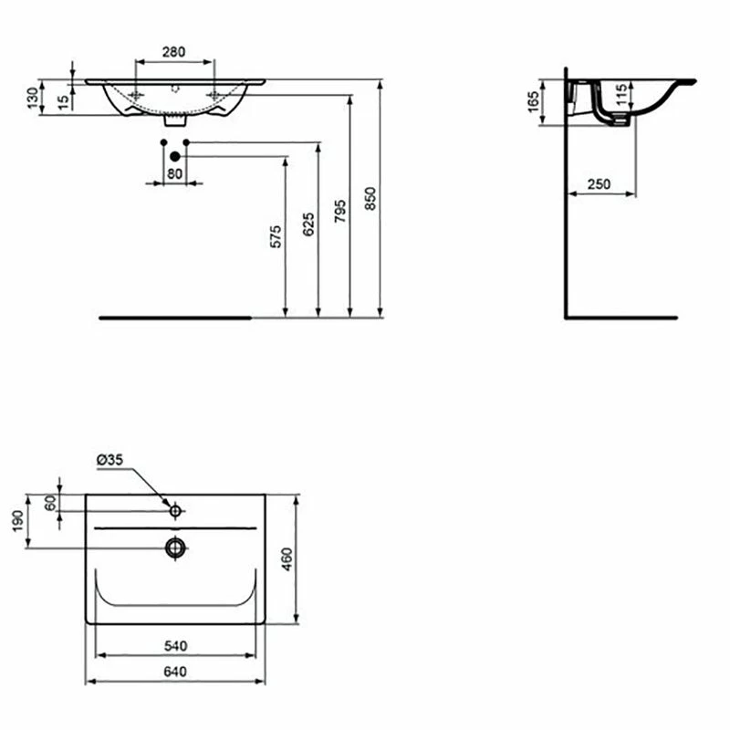 Ideal Standard Connect Air 640mm Wall Hung Vanity Basin 1 Tap Hole – White – E028901