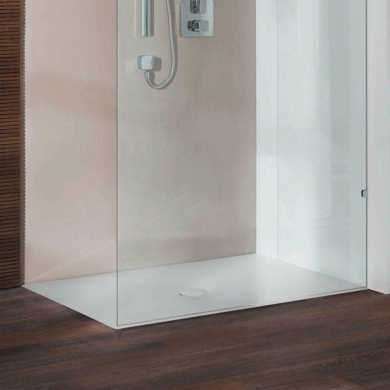 Not only that it is easy to clean and hygienic, this bath is fully sustainable and can be recycled after use. This modern floor-level surface features a geometric shape with square radius and a slight inclination to the waste which ensures a good drainage and produces a distinctive feel-good atmosphere in the bathroom.