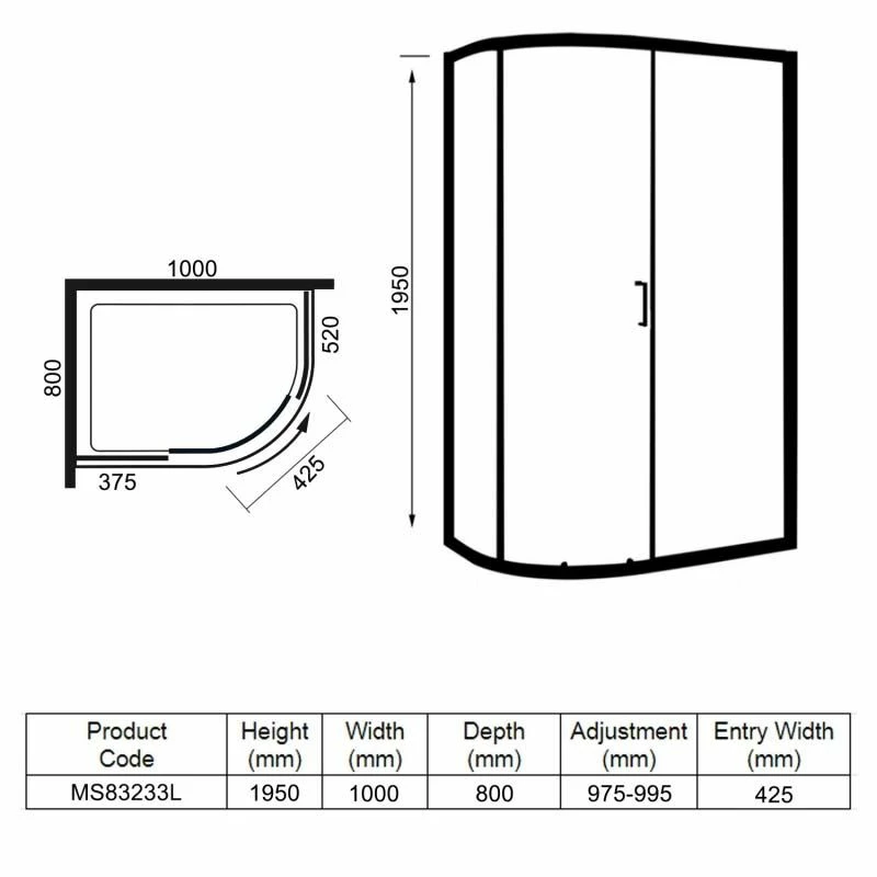 Merlyn 8 Series 1 Door Offset Quadrant Left Hand Including Merlyn MStone Tray 1000 x 800mm – MS83233L