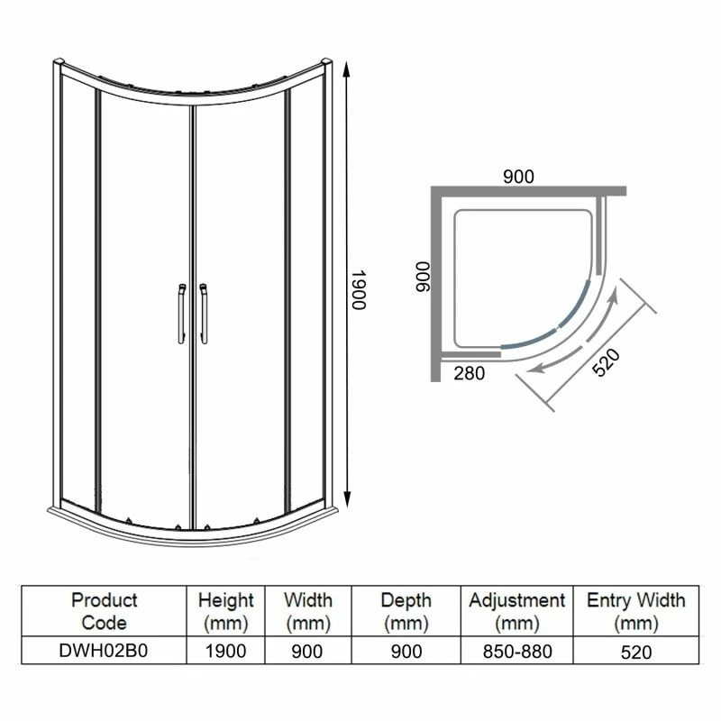 Merlyn Ionic Essence Framed 2 Door Quadrant Shower Enclosure 900mm – DWH02BO