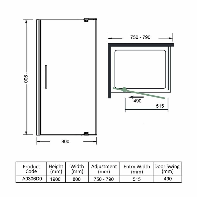 Merlyn Ionic Express Pivot Shower Door 800mm Wide – 6mm Glass – A0306D0