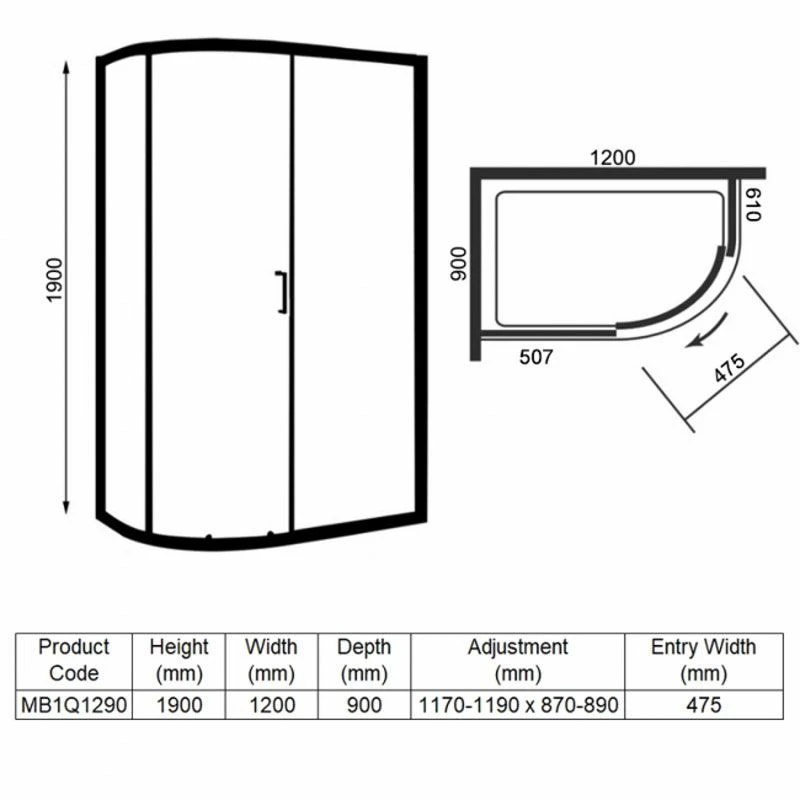 Merlyn MBOX 1 Door Offset Quadrant Shower Enclosure 1200 x 900mm – MB1Q1290
