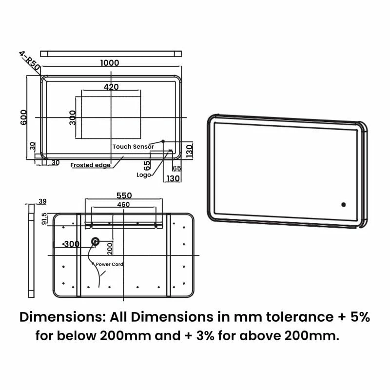 - Dimensions: H:1000 x W:600 x D:39mm