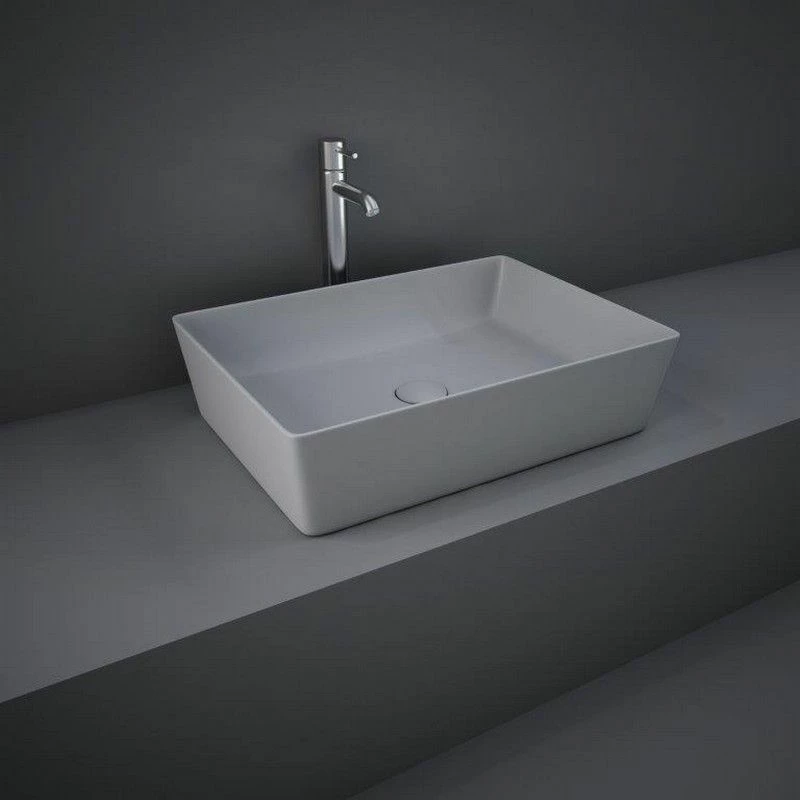The RAK Feeling rectangular 50cm countertop basin is a highly resistant, stylish, modern, Italian-crafted unit. Manufactured from durable vitreous china and characterized by slim 5mm edges. It has been designed to sit on any compatible countertop. Created without tap holes or an overflow
