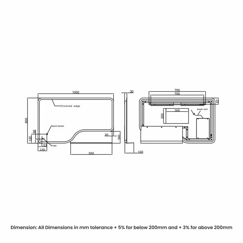 - Dimensions: H:600 x W:1000 x D:30mm