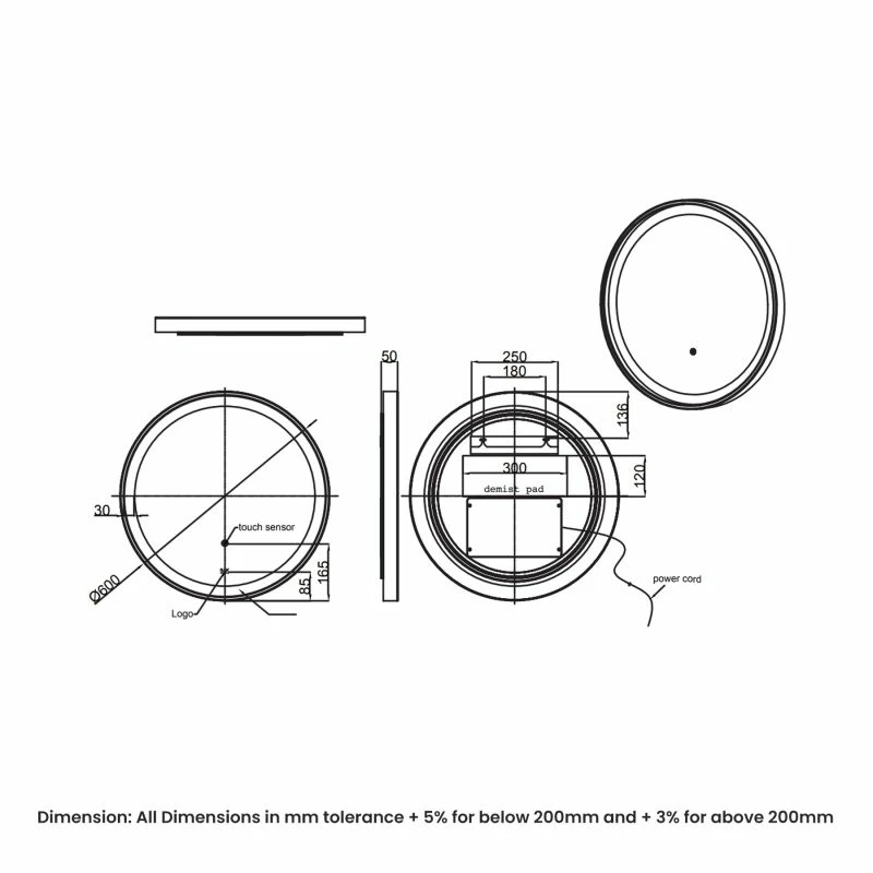 - Dimensions: H:600 x W:600 x D:50mm