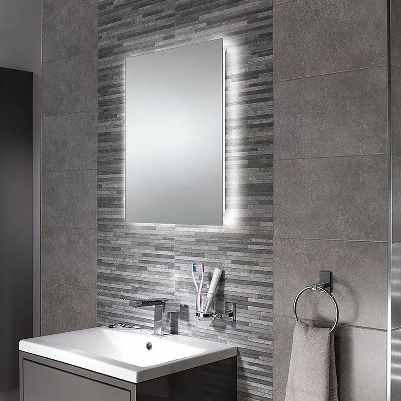 The perimeter of the mirror is fully illuminated and provides a bright and vibrant atmospheric glow helping to brighten any bathroom.