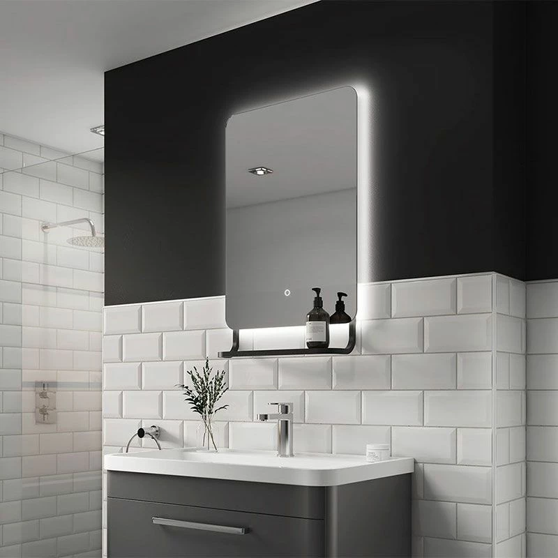 - Backlit mirror with integrated shelf