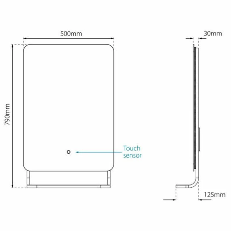- Dimensions: H:790 x W:500 x D:125mm