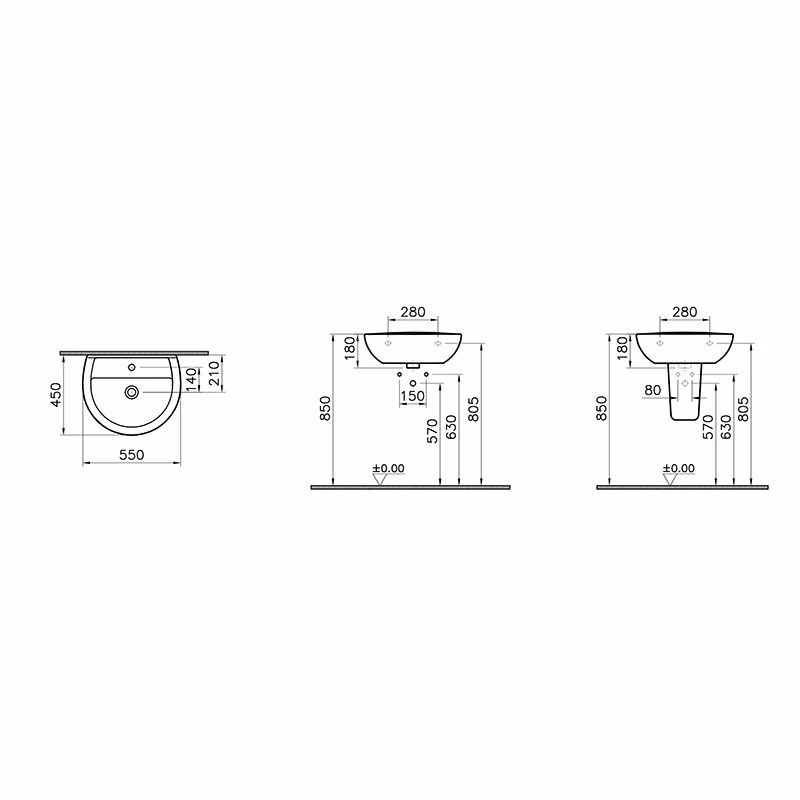 Vitra Layton 550mm Washbasin 2 Tap Holes – VT5002WW